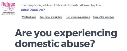 Refuge – Freephone, 24 hour National Domestic Abuse Helpline 0808 2000 247